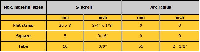 The max. scroll size may vary due to the temper (spring) of the steel.