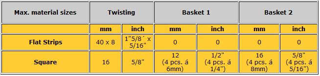 twisting massive square bars or flat strips giving them a final exclusive touch adding decorative baskets up to 16mm square bars.